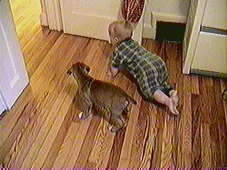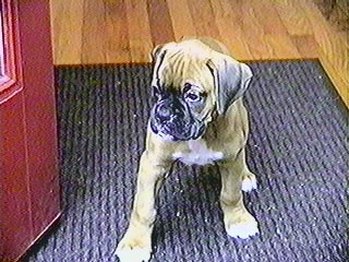 Doing GreatSo far, he seems to be adjusting extremely well. Plato seems a lot calmer than other boxer puppies I've met. He romps and plays just as enthusiastically, but he doesn't seem squirmy or hyper. It has all gone much better than I had imagined it would. I'm not sure exactly what I was expecting, but I had feared it would be much worse. Mainly, we've just need to train ourselves to establish good patterns and habits of mind. Plato is quickly learning the household and soon will fit right in. |