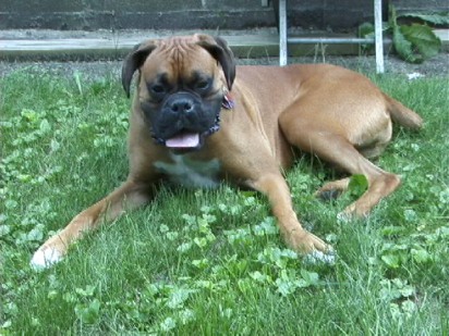 A Calm and Sedate BeastOn a hot day, Plato is a calm and sedate beast. The rest of the time, watch out. He is approaching two now and, as he ages, he has become more solid and reliable. He can respoond to sit!, down! and speak!; he can heel well; and he comes when recalled. Unless there's another dog -- he can't resist meeting another dog.He had mostly quit jumping up on people, but then we had him boarded while we were on vacation. We get him the VIP treatment at the Valley Inn for Pets. He always seems eager to go and obviously has a good time there, but I think the girls let him jump up and lick their faces. Oh, well. It's a small price to pay for him to have a good time while we're away. |