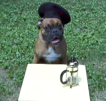 Coffee Anyone?Plato isn't exactly a beatnik, though he likes to play one on TV (or on the web, anyway). When I took a picture of myself wearing a beret, Plato seemed like he wanted to get into the act too.Plato gets compliments wherever we go. He loves getting out around people. I try to take him to the farmer's market every week and look for other opportunities to get him out and about. Charlie had his first PeeWee baseball game and Plato got to attend (though he didn't pay much attention to the game as there were other dogs in the area. At the game we met another boxer. Then we met yet another boxer the next morning.
